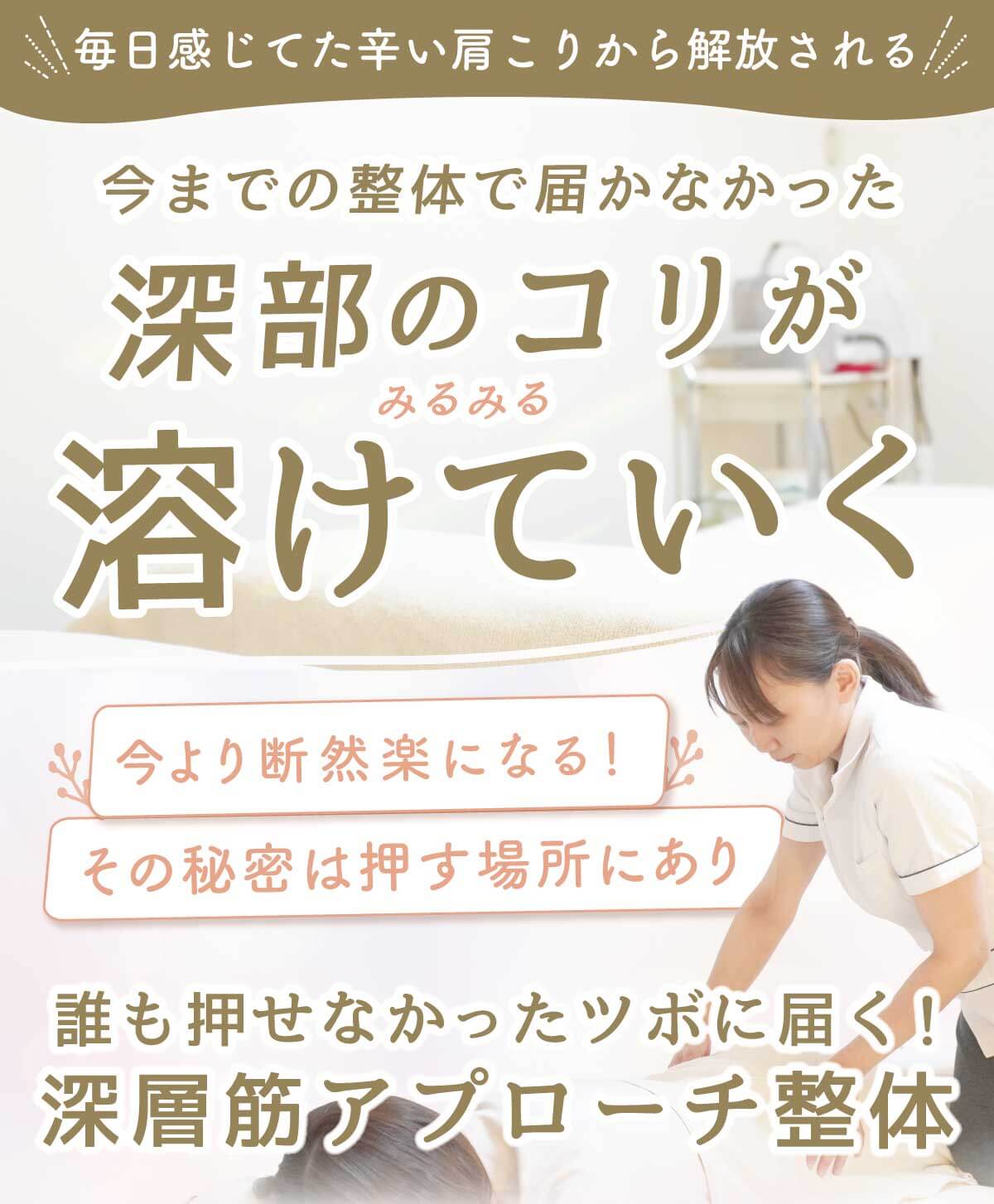 慢性化したガチガチの肩こりは、肩甲骨の柔軟性まで失われている状態の方が多いです。ですので、肩の筋肉をほぐすだけでなく、肩甲骨の柔軟性を取り戻して可動域を取り戻す必要があります。 お客様の声 voice キタケン 2023-12-07 Trustindex は、レビューの元のソースが Google であることを確認します。 最初は慢性腰痛を抱えていたので施術を受けに行きました。 ホームページを見て「なんとなく期待できるかも」そんな思いでした。 ただ、今まで何年も何箇所も病院や整骨院を転々としたものの、腰痛が改善しなかったので半信半疑ではありました。 ところが、初めて受けた時から「他では体感したことのない施術」という印象で、さらに有効なセルフケアの方法を教えていただき、毎日実践するうちに確実に腰痛が改善していきました。 ただ、改善は順調という訳ではなかったのですが、教わったケアを地道に続けました。 今までもいろんな治療院で何かを教わっても、そんなに効果を実感できず続かなかったのが、今回は気持ちも違いました。 それは多分施術の疑問やセルフケアの疑問など、細かい質問にも懇切丁寧に答えていただけたり、親身になってアドバイスをもらえるから自分も頑張ろうと思えたんだと思います。 個人的には腰痛治療を受けた中では、初めて信頼できる先生だと感じました(^^) 初めて通ってからは約2年が経ちましたが、今では腰や膝など不調を感じ始めたタイミングで「メンテナンス」のために通って重症化を防いでもらっています! 藤田恭子 2023-11-24 Trustindex は、レビューの元のソースが Google であることを確認します。 サロンには、腰痛予防とあきらめていたガンコな猫背矯正で伺いました。 初日から効果を感じ続けることに。 サロンでは、施術のみならず、気になるたころのアドバイスもいただくけるので、日々のセルフケアに、とても役立ちます。 最近では、腰も軽くなり、歩き方もシャープだと、嬉しい言葉をかけてくださる人もあり、私の長年のコンプレックスだった、猫背が解消された思いです。 今では、晴れ晴れした気分で胸を張って歩けています。 「いくつになっても、身体は改善することができる」との、佐藤先生の言葉に間違いはなかったと実感しています。 身体に悩みがある方には、ぜひオススメです。 はしもとはるか 2023-11-05 Trustindex は、レビューの元のソースが Google であることを確認します。 通い始めて、約4ヶ月です。 10年以上、毎日のように腰痛に苦しんでいたのですが、初めて施術を受けてから1ヶ月もたたないうちに、腰痛がなくなりました。 また、肩凝りもなくなり、毎日の生活が本当に変わり、楽になりました。 ホームケアの仕方も教えてくださります。毎日のストレッチや正しい姿勢を意識して過ごすのが楽しくなっています。 yukihisa taniguchi 2023-11-04 Trustindex は、レビューの元のソースが Google であることを確認します。 20店舗以上廻って、腰痛を治すお店に出会うことは無かった私ですが、ここの先生は必ず治してくれます。 しかも半年で腰痛が治り、さらに肩こりまで治りました。 おかげで、仕事に全集中できるようになり、最高の気分です。 先生は一人一人に合わせて、施術するのは当然のこと、腰痛が再び起きないように日々の歩き方など日々の体の使い方まで教えてもらえます。 ぜひ、腰痛で長年悩まれている方ほど、おススメです。 体が元気になれば、人生が変わります。 OK OK 2023-08-19 Trustindex は、レビューの元のソースが Google であることを確認します。 ひどい腰痛になってしまい仕事に支障が出だしたため 整形外科・整骨院へ通ったりペインクリニックでブロック注射を 打ったりしましたが全く改善せず途方に暮れていた時 友人の紹介でこちらの整体院でお世話になる事に。 先生に施術をしてもらい お陰様で現在は腰痛の痛みは気にならない状態まで回復しました。 姿勢の指導やセルフケア方法などもアドバイス いただいたおかげで現在もいい状態を維持できています。 整骨院などへ何か所も通って腰痛が改善しない方がいれば こちらの整体院はおすすめだと思います。 頑固な肩こりもスッキリです! 施術の後はスッキリ爽快です! デスクワークをしているので、すぐ肩や首が硬くなり、酷いと頭痛になります。 ここに来たら解消してくれるので、肩甲骨までガチガチになって辛くなってきても、心配することなく安心して仕事に集中できます。 メンテナンスしてもらうと、睡眠の質も良いですので、定期的にお世話になっています。 深部まで届いて痛気持ちい! 肩こりも酷く少しでも楽になりたくて、伺いました。 腰痛も肩こりも、本当に良くなりました。色々な整体に通いましたが、こんなにもほぐれた感があるのは、初めてです。 セルフケアもすぐ効果を実感できるので、コリを感じた時にやっています。 院長プロフィール 私は整体歴20年、長年にわたり自身のリラクゼーションサロンで、整体やリンパマッサージ、ダイ