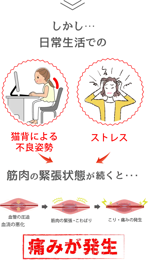 しかし、患部を強く揉みほぐしてもすぐにコリが戻る現実を痛感していました。