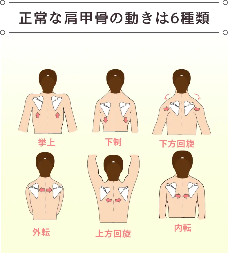 この状態を放置すると、肩甲骨は背中に張り付き、さらに可動域が狭くなるという悪循環に陥ります。